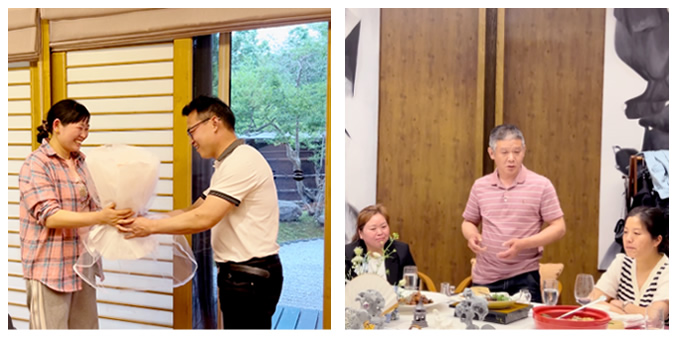 經(jīng)過一天的相處,各小家庭之間都增進(jìn)了了解,晚上,徐總特意準(zhǔn)備了豐盛的晚宴,大家也早已和諧融洽,談笑風(fēng)生,暢所欲言,分享感悟。席間,家屬們鼓勵(lì)并支持他們的“愛人”、“爸爸”全身心投入到未來(lái)的工作中,為前程的發(fā)展盡一份家屬的綿薄之力。